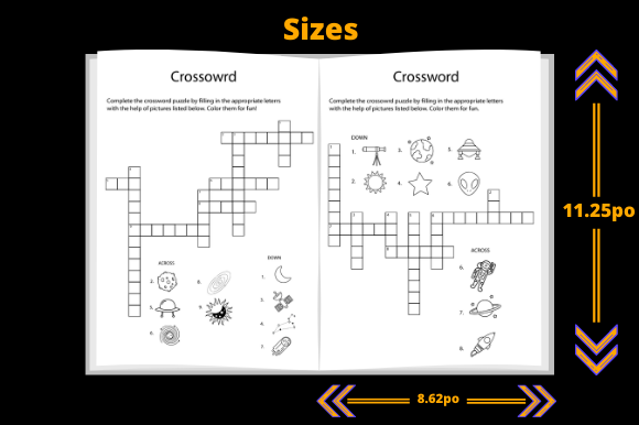 Here are 5 crosswords to add to your activity books. The theme is space. There are several types of crossword puzzles, with pictures, clues, and words.