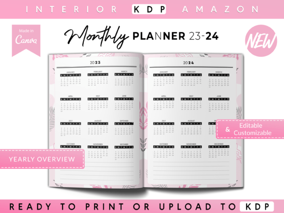 Fully editable & customizable Canva templates for creating 2 Year Planners on Amazon KDP